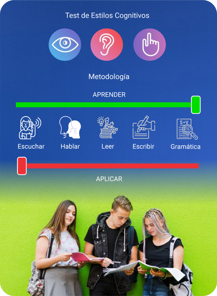 Aplicamos a todos nuestros estudiantes un test de habilidades lingüisticas y aprestamiento cognitivo que nos permite identificar cuales son sus habilidades naturales para un aprendizaje efectivo Utilizando la Metodología ABP.